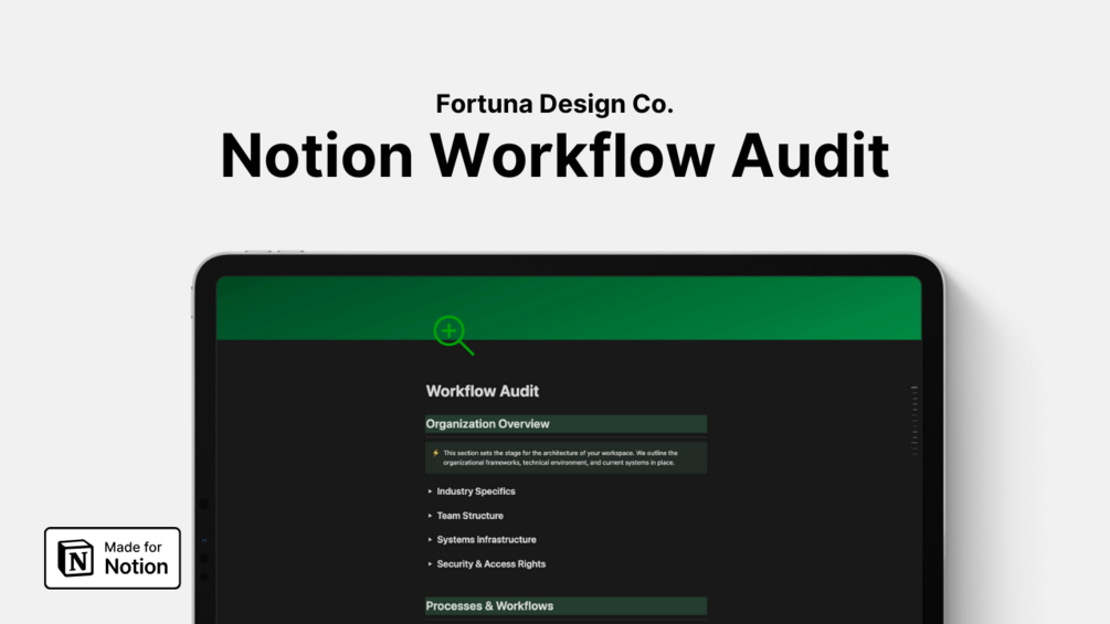 The Workflow Audit provides a comprehensive framework for analyzing and optimizing an organization's workflows in Notion.